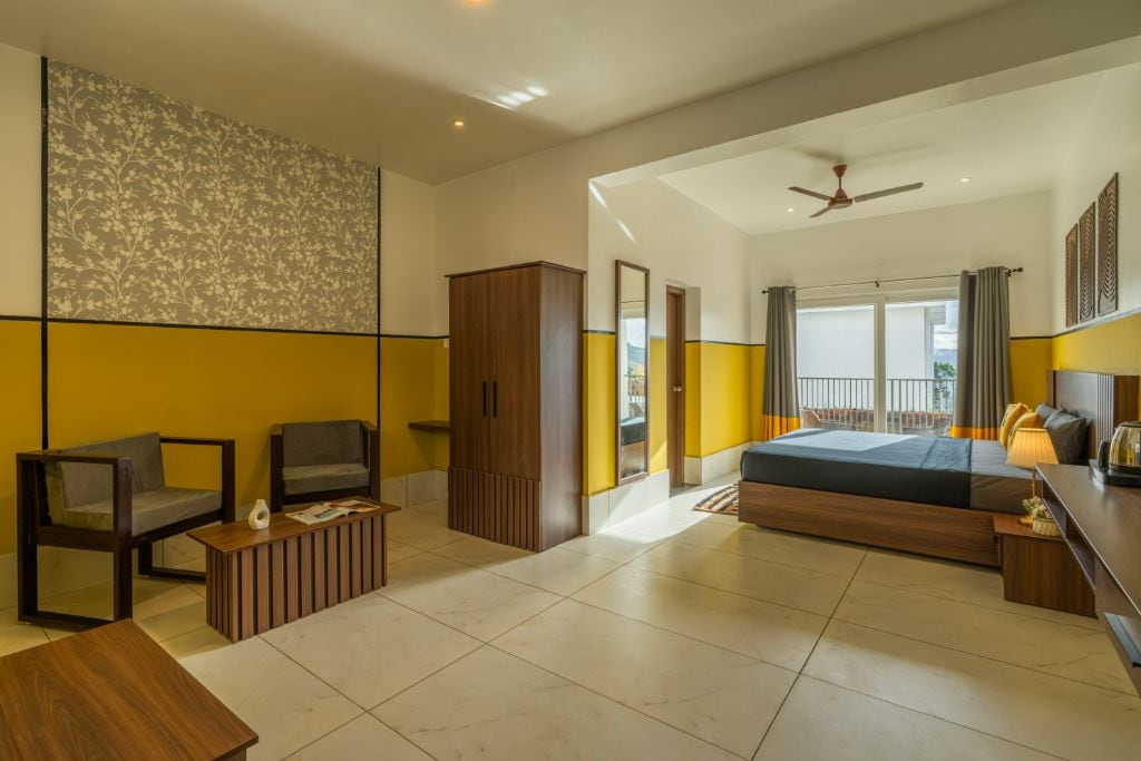 This A-frame, 3-bedroom house is on a quiet street in Vilpatti, just 6 km from the central Kodaikanal. With nearly three-quarters of the front built with glass, the living room offers amazing views of the serene mountains. The house features a beautiful, extensive patio, a mini library, comfortable work seating, and a fully functional kitchen, making it perfect for families with kids. The sunrise view, with rays falling on the mountains, is best enjoyed from the first floor.