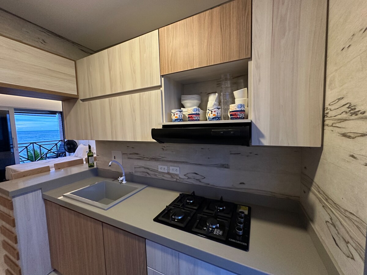 Suite tepi laut yang spektakuler, di lantai pertama dengan pantai pribadi, kolam renang, dan concierge 24 jam yang menawarkan kenyamanan dan ketenangan; dirancang untuk pasangan, keluarga, teman, atau wisatawan yang mencari suasana yang nyaman, matahari terbenam yang memukau, angin sepoi-sepoi, dan ketenangan pantai di pesisir Karibia Kolombia. - Tempat tidur queen + tempat tidur tambahan sommier - Sofacama - Smart TV - WiFi - Dapur Kamar mandi - AC - Teras luar ruangan - Operator - Kios tipe payung pantai