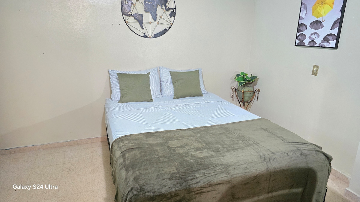 Studio independen dengan pintu masuk pribadi, berlokasi di kawasan perumahan Brisas del Golf yang tenang. Cocok untuk masa inap singkat, beristirahat, dan privasi. Tempat ini tidak memiliki dapur tradisional; tempat ini memiliki microwave, pembuat kopi, dan kulkas untuk makanan ringan. Sekitar 2 menit berjalan kaki dari supermarket, klinik, restoran, taman, dan apotek.