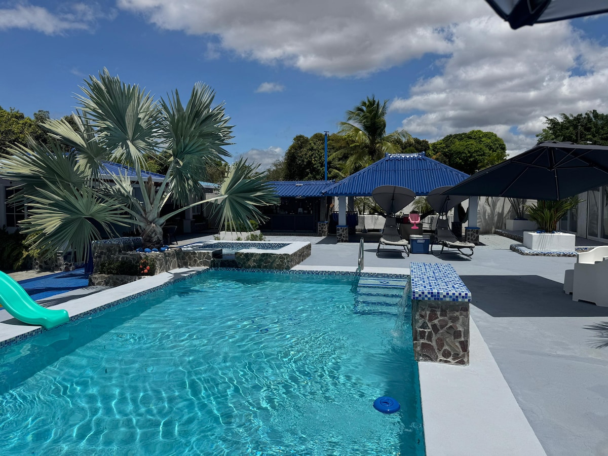 Rumah pantai cerdas yang nyaman dengan Kolam Renang , Jacuzzi & Air Terjun PRIBADI yang indah. Dekat jalan utama Coronado dan hanya berjarak 900 mts dari pantai terdekat. Rumah ini memiliki 2 kamar dan ruang tamu yang nyaman semua dengan a/c, TV 55 “dengan TV Kabel dan dapur lengkap. Teras Besar dengan kipas angin langit - langit. Hingga 8 orang bisa tidur di dalam rumah Anda juga bisa menikmati Wi - FI berkecepatan tinggi dan sebagai opsi gunakan ALEXA untuk mengontrol beberapa lampu, kolam renang, TV, dan Netflix atau Spotify hanya menggunakan SUARA Anda.