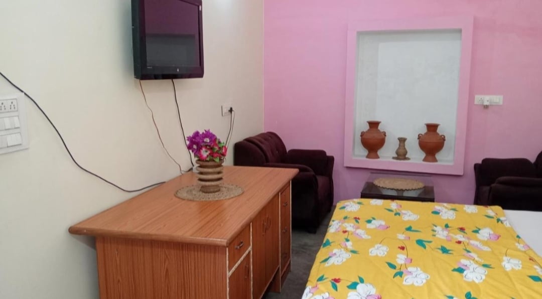 Private room with private entrance at the peaceful Khajuraho Rancho homestay featuring: -King-sized bed -Attached private bathroom (with geyser) -Ceiling fan -Free Wifi -Room size of ~192 sq ft -Garden/patio views -Shared terrace -Shared kitchen -Washing machine and free parking are included -Home-cooked meals (snacks, breakfast, lunch, dinner) are available upon request for a small price -Western Group of Temples are a 22-minute walk (about 1.0 mi) -Khajuraho Airport is 5.2 mi distance