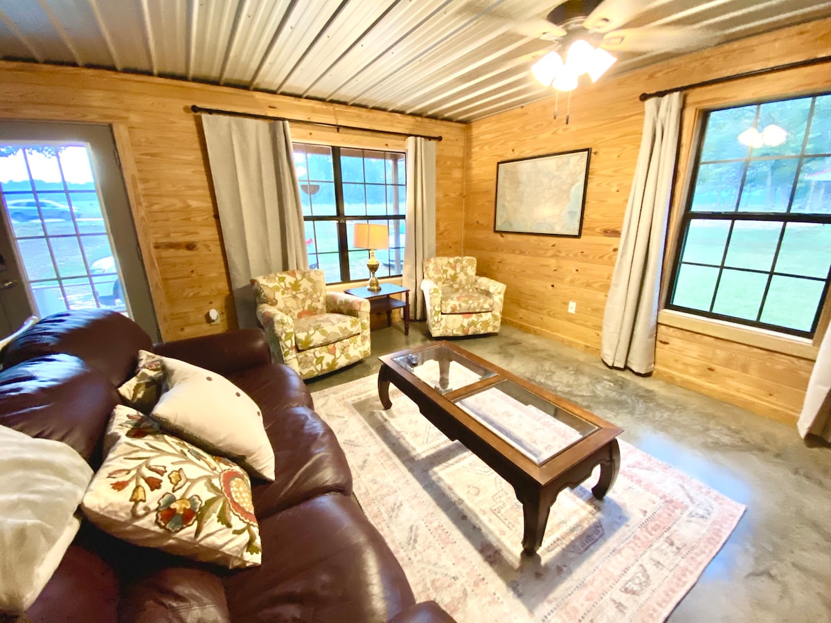 Selamat datang di liburan sempurna Anda di daerah Sardis/Oxford! Kabin yang direnovasi dengan indah ini menawarkan pesona kehidupan pedesaan dengan semua kenyamanan modern. Terletak hanya beberapa menit dari Sardis Lake, dan beberapa menit ke Ole Miss dan Square ikonik Oxford, ini adalah tempat peristirahatan ideal bagi pecinta luar ruangan, penggemar sepak bola, dan siapa saja yang ingin bersantai di lokasi pusat yang damai. Baik Anda berada di kota ini untuk pertandingan, petualangan danau di akhir pekan, atau hanya ingin bersantai, kabin ini adalah basis rumah Anda untuk semuanya.