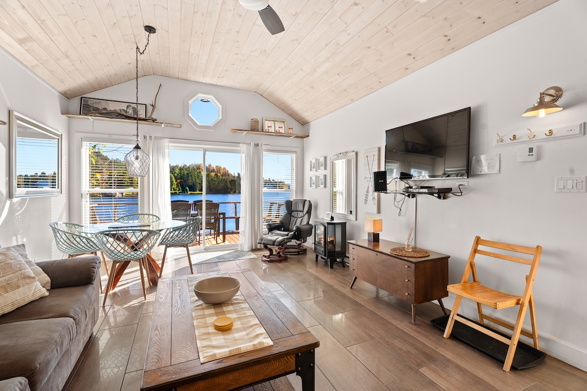 Terletak di alam, chalet terpencil ini menawarkan segala hal yang Anda butuhkan untuk bersantai dan terhubung kembali. Dilengkapi dengan area dapur luar ruangan dengan oven pizza kayu dan spa cedar bundar (tersedia dari Mei hingga Sept), dua papan dayung, perahu dayung, tubing & sepatu salju, dan kompor impian chef 48 inci dengan oven ganda. Termasuk internet berkecepatan tinggi yang andal, TV LED 55 inci dengan chromecast, kulkas dan freezer di bawah meja, BBQ, dan perapian kayu bakar untuk malam yang nyaman di dalam ruangan.