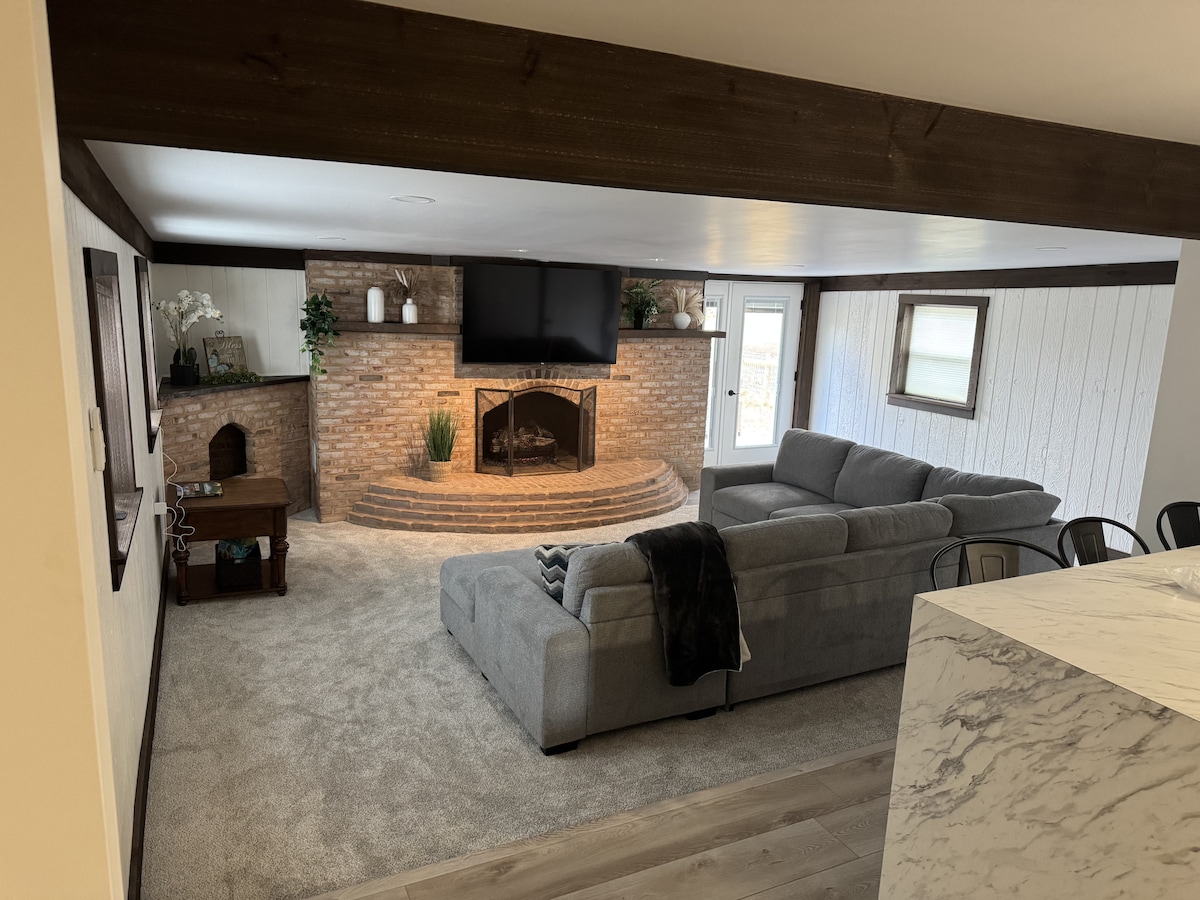 - Pengalaman 5 bintang - Hewan ternak kecil di properti selama musim semi, musim panas, dan musim gugur - Kamar matahari menghadap halaman belakang pribadi - Lima kamar tidur yang nyaman dan empat kamar mandi lengkap - Perapian gas dan TV Roku - Tempat liburan ramah keluarga *Harap perhatikan bahwa 4 kamar tidur berada di lantai dua dan 1 kamar tidur berada di ruang bawah tanah.