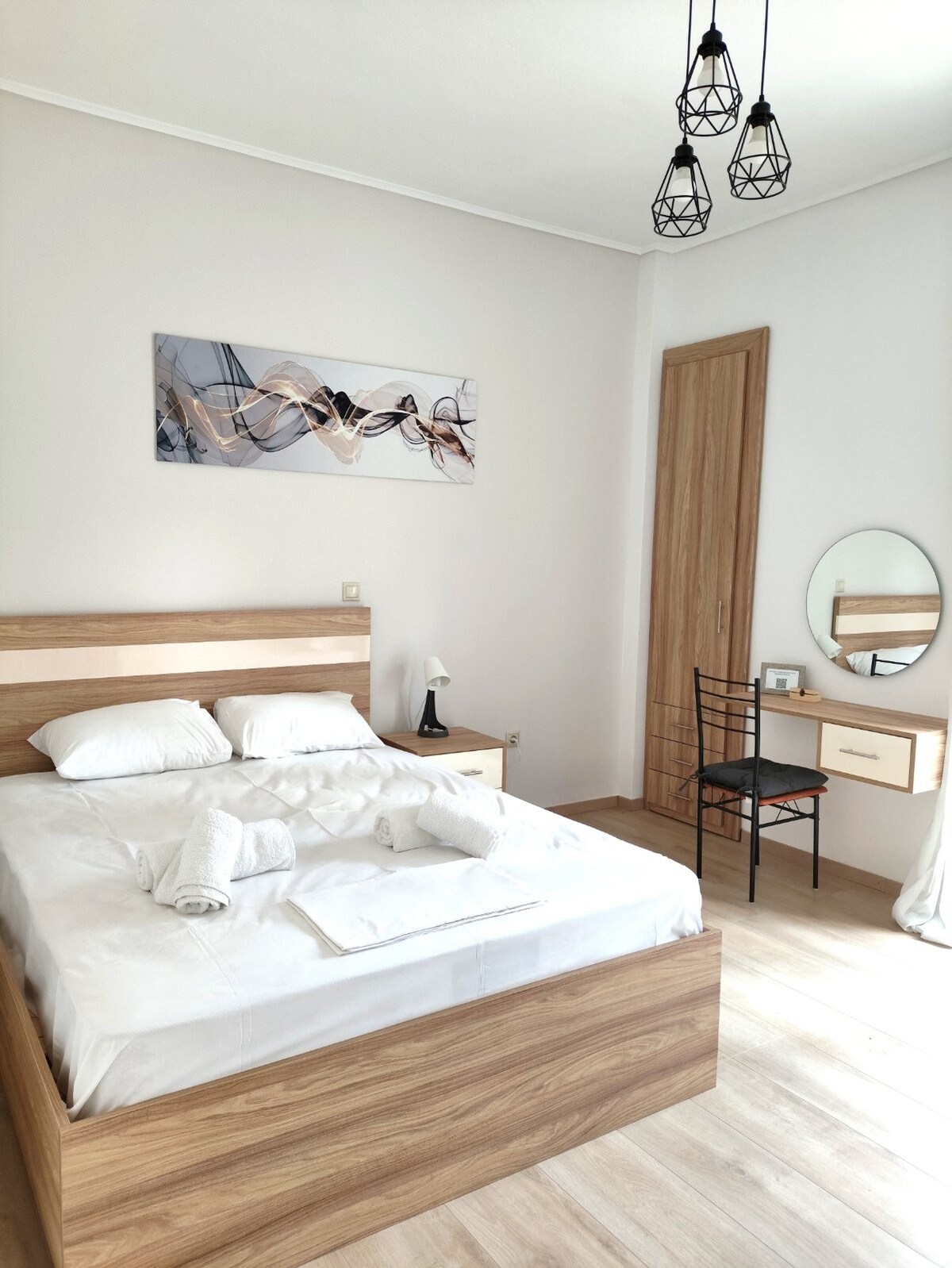 Fenestra Mare is a peaceful retreat in Chios for couples, families, and remote workers. Just 5 minutes by car from the town and Agia Paraskevi beach, it features private parking, a sea-view balcony, full A/C, two cozy double bedrooms, a fully equipped kitchen, dining table, living area, and a dedicated workspace. Whether you are relaxing on vacation or working remotely, this home offers a peaceful, practical, and stylish base to enjoy everything the island has to offer.