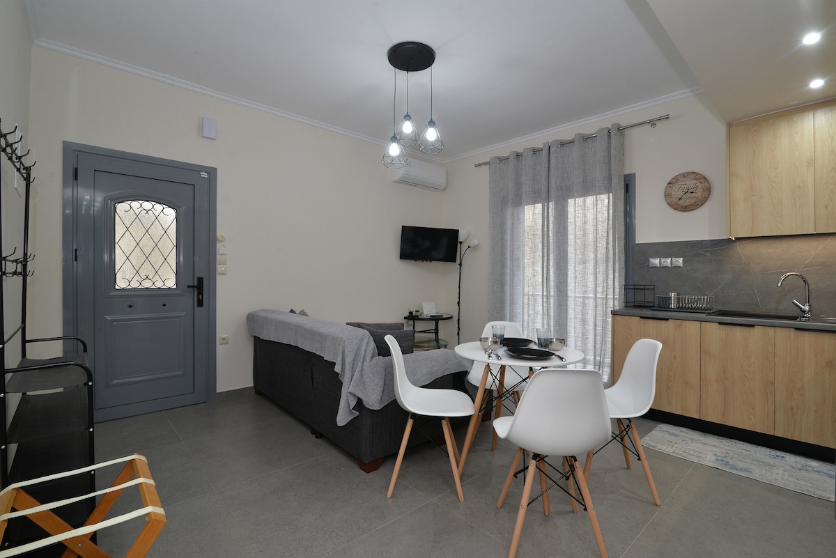 Apartemen modern dan cerah berukuran 47 meter persegi di pusat Leptokarya, 10 menit dari laut & 5 menit dari stasiun. Ideal untuk keluarga atau profesional, dengan pintu masuk mandiri, teras, smart TV, dapur lengkap & kamar mandi dengan mesin cuci. Basis ideal untuk Olympus, situs arkeologi & desa tradisional.