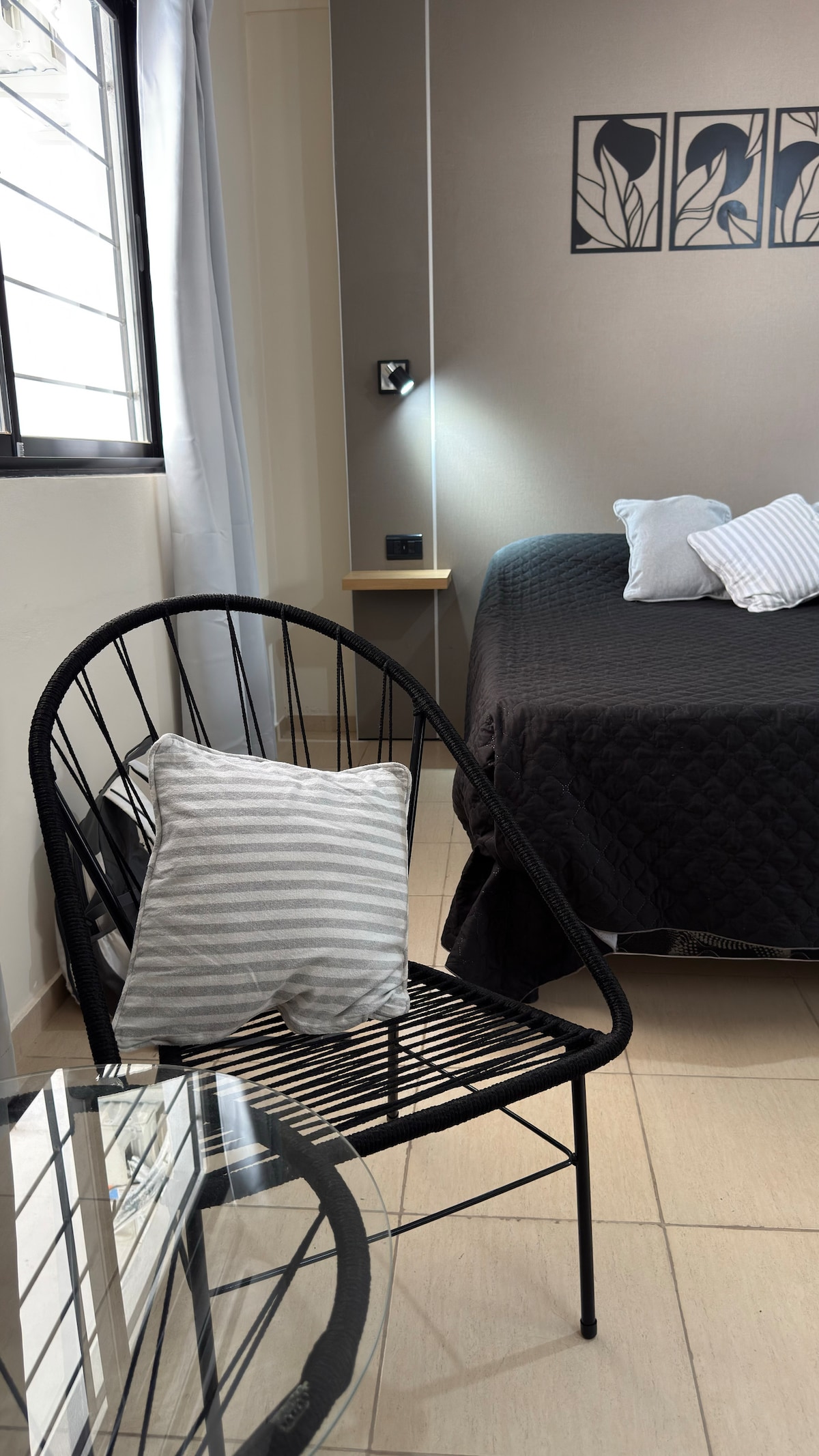 Apartemen yang nyaman, baru, dan terang. Ideal untuk 2 orang. Terletak 7 blok dari Terminal Omnibus dan 12 blok dari pusat kota Paraná. Apartemen ini memiliki Wi - Fi, TV layar datar, dapur, microwave, ketel listrik, pengering rambut, dan kulkas dengan freezer. Tempat ini memiliki pemanas dan AC . Fasilitas seprai dan kamar mandi tersedia. Komplek ini memiliki kamera keamanan, patio dengan churrasquera dan teras untuk digunakan bersama. Nilai masa inap adalah per orang.