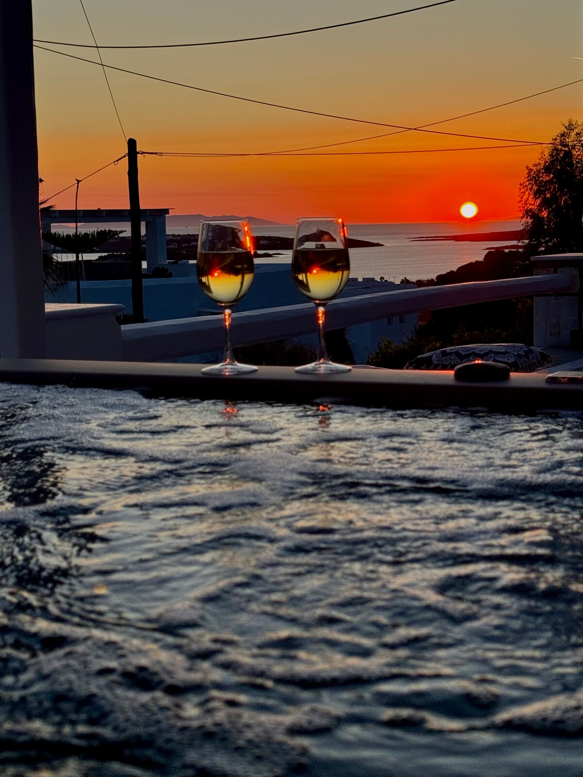 Vila matahari terbenam Sueno untuk 2 orang berlokasi di area bagus yang menggabungkan pemandangan laut yang indah, merupakan bagian dari kompleks yang terdiri dari 5 apartemen lainnya,Jaraknya 2,3 kilometer dari pelabuhan Parikia. Kota tua, toko - toko, dan kehidupan malam berjarak 1200 meter. Luasnya 33 meter persegi dan memiliki dapur lengkap, 1 kamar tidur, ruang tamu, 1 kamar mandi dan beranda dengan jacuzzi tidak dipanaskan. Anda mengantarkannya bersih dengan seprai dan handuk dan tidak ada layanan yang disertakan selama Anda menginap.