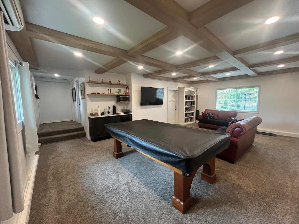 Ini adalah unit apartemen di dalam bangunan bergaya barndominium yang memiliki dua unit tamu terpisah. Pintu masuk dan kamar tidur berada di lantai utama, dengan dua loteng tidur di atas. Satu tempat tidur queen di lantai utama, serta dapur kecil (tidak ada mesin cuci piring), dua kamar mandi, dan cucian lengkap. Tangga bergaya kapal mengarah ke loteng tidur yang menampung enam tempat tidur twin dan dua tempat tidur queen tambahan. Kapasitas total 12 orang. Ruang tamu dan dapur kompak. Kursi meja makan enam.
