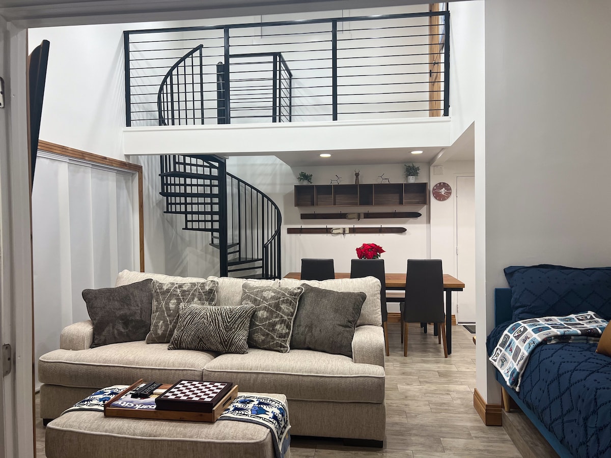 LOKASI!! Apartemen Studio kecil di Town Lift di jantung Main Street. Kondominium ini menawarkan fungsi dan gaya terbaik; ruang tamu dengan sofa yang berubah menjadi tempat tidur berukuran queen yang nyaman, dapur kecil dengan kulkas, microwave, dan Keurig, dan meja makan yang berubah menjadi tempat tidur susun untuk anak - anak atau teman ekstra. Nikmati area bersantai di atap bersama dengan bak mandi air panas, perapian, dan bbq. *Parkir gratis. * Wifi Kecepatan Tinggi *Restoran, bar, hiking, dan toko berjarak beberapa langkah saja.