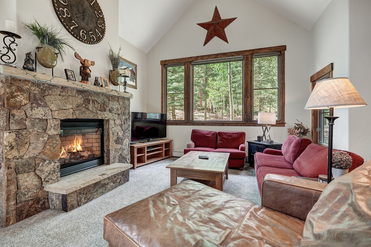 Here's your perfect spot to relax after a day skiing, biking, or otherwise exploring the mountain! This is a 1 bed, 1 bath unit with a private ground floor entrance. It is less than a 5-minute walk to the Quicksilver chairlift and Peak 9 base in downtown Breck. Kick up your feet up in front of a gas fireplace, or cook dinner in the full kitchen, before heading for a soak in the hot tubs or heading out to town.