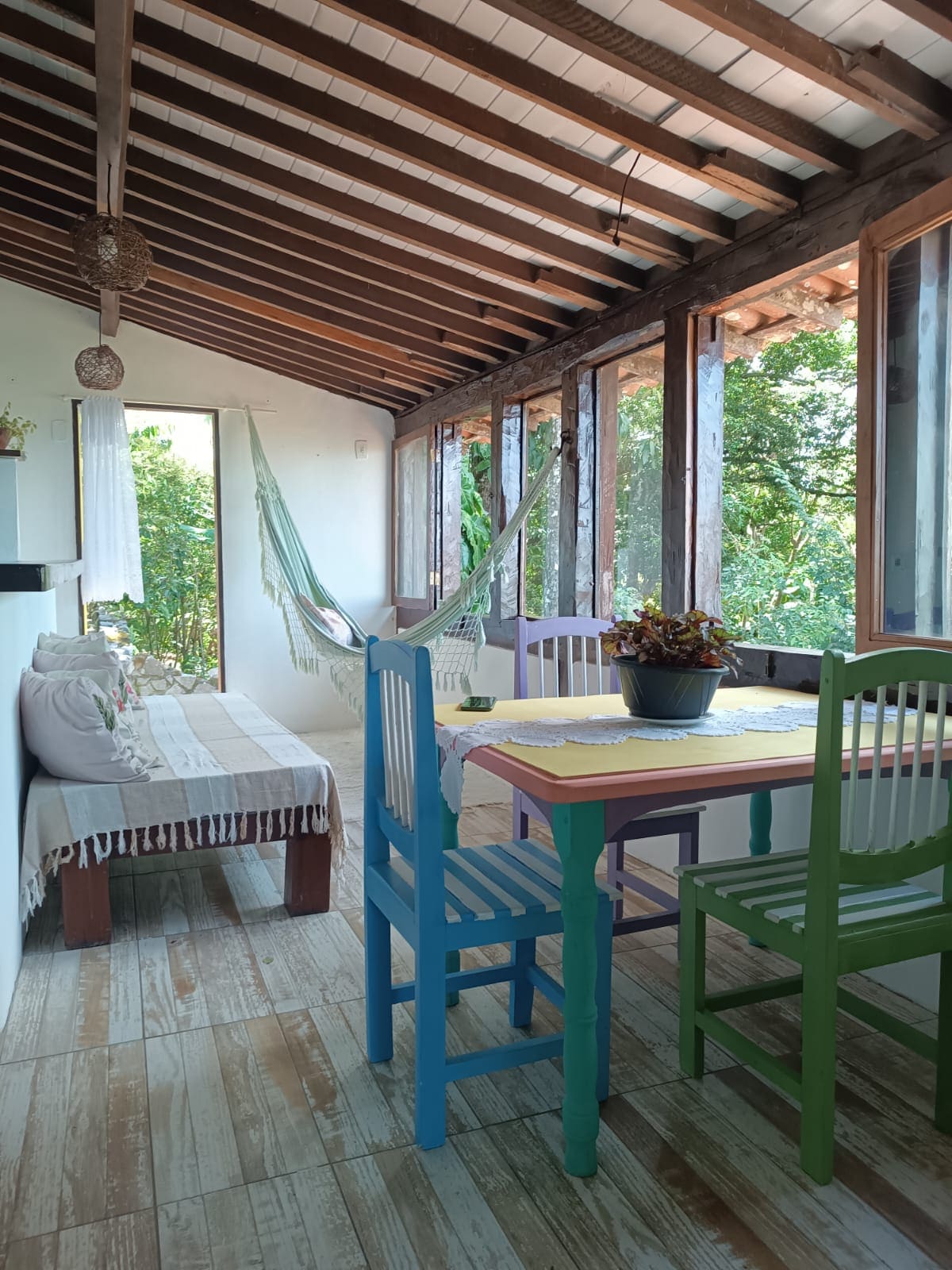 Rumah adalah rumah yang terletak di depan pantai Pitinga, pantai Arraial d'Ajuda yang paling indah. Taman yang lezat memisahkan pantai dari pintu masuk utama rumah. Semua dilengkapi dengan perabotan dan peralatan baru, merupakan rumah yang praktis dan sangat terang, dengan pemandangan istimewa kolam renang alami yang terbentuk di Praia da Pitinga. Tempat keheningan dan kedamaian yang luar biasa, dengan berjalan kaki singkat sejauh 200 m. Anda sudah bisa menemukan kios pantai terbaik di daerah ini.