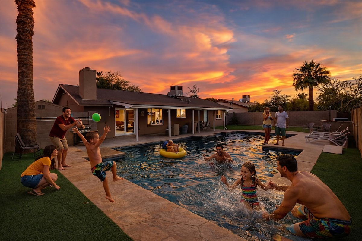 PHX Home dengan kolam renang yang hangat, dapur lengkap, ruang kerja