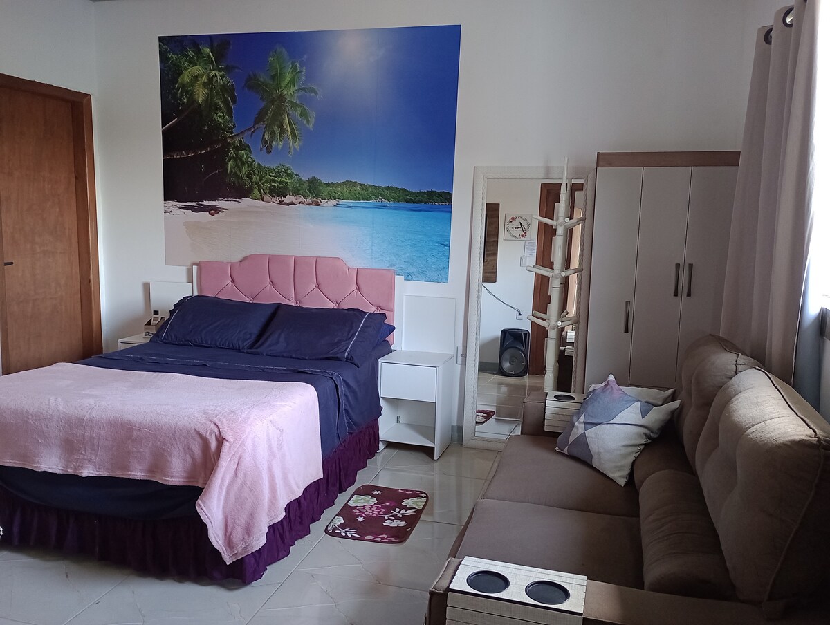 Suasananya cocok bagi mereka yang mencari kenyamanan dan kepraktisan untuk bersantai dan menikmati. Lingkungan terpadu: tempat tidur double, AC dingin, TV, Wi-Fi 500 mg, meja makan; Dapur mini dengan cooktop 2 burner, microwave, pembuat kopi, kulkas, pemanggang roti, penggoreng udara, ketel listrik, pembuat sandwich, peralatan rumah tangga dan seprai. Sofa untuk anak-anak tidur, kursi bayi. Catatan: Kami tidak menyediakan handuk mandi dan perlengkapan mandi. Kami tidak menerima hewan peliharaan.