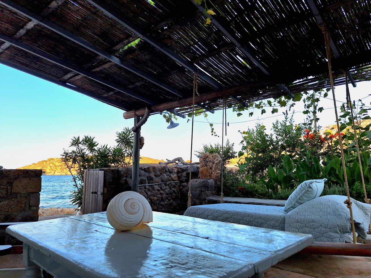 Pondok yang menyenangkan, hanya lima meter dari laut ... ! Bagi yang menyukai laut .. berenang .. berjemur..bahkan memancing !!! Taman pribadi dengan beberapa tanaman merambat, pohon lemon, dan sayuran musiman!! dan semua ini hanya 3,5 km dari pelabuhan Patmos !! Pondok yang menyenangkan, hanya lima meter dari laut... !!! Bagi yang menyukai laut.. berenang.. berjemur..bahkan memancing!!!Kebun anggur pribadi, lemon dan sayuran musiman dan rempah - rempah!! hanya 3,5 km dari pelabuhan