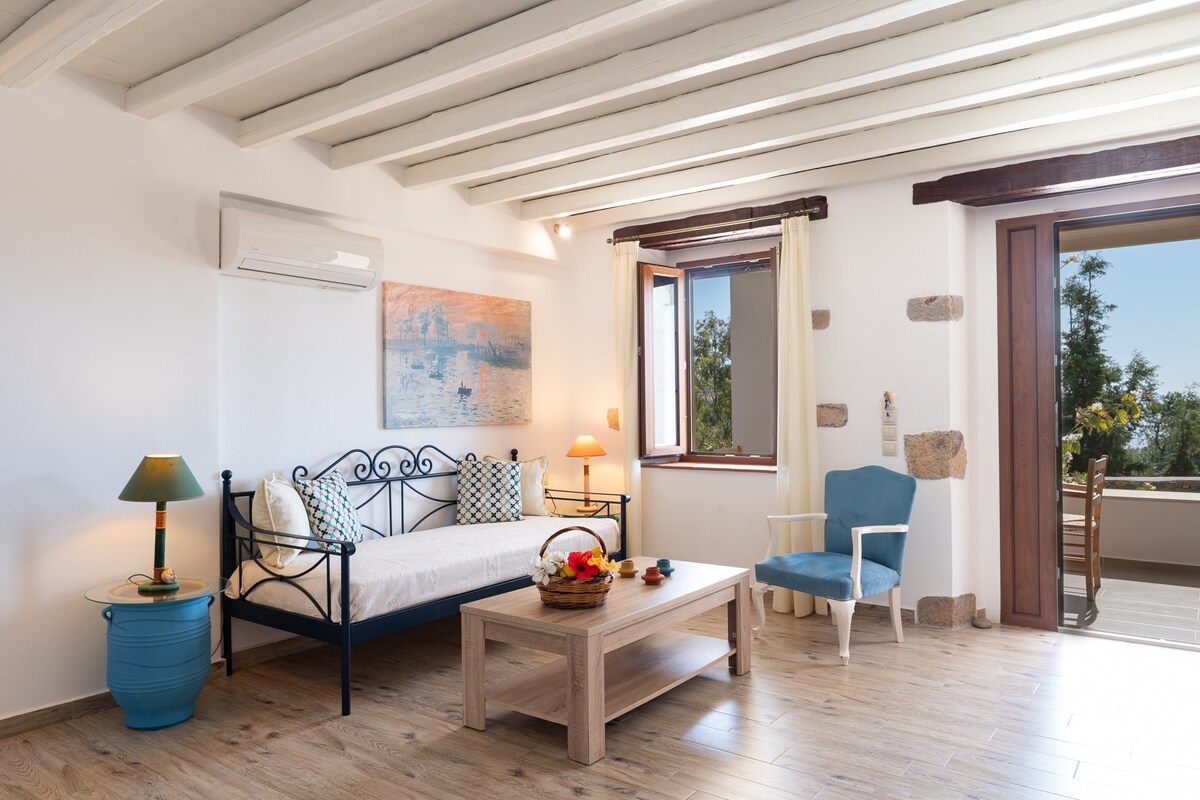 Apartemen tiga orang (50sm) Villa Sofia menyambut tamu ke suasana elegan yang penuh dengan aura intens pulau Patmos. Di interior yang nyaman, Anda akan menemukan kamar tidur, dapur lengkap, kamar mandi, ruang duduk, smart TV dengan Netflix dan beranda pribadi yang menatap pantai Meloi. Jika Anda telah mencari “apartemen triple untuk diizinkan masuk Patmos” atau “tempat menginap di Patmos ”, maka Blue Vista Patmos adalah pilihan terbaik Anda untuk akomodasi unik di pulau ini!