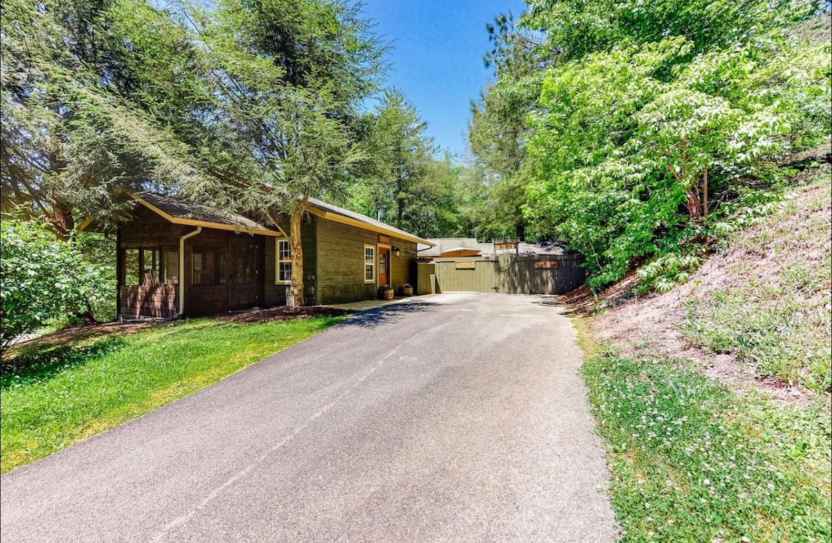 Tetap nyaman dan tenteram di kabin baru yang berlokasi di pusat kota ini. Tempat kami menawarkan akses mudah dari Hwy 321 Tidak ada jalan curam! Denah terbuka dengan langit - langit berkubah dan pemandangan indah Gunung Wears Valley dari beranda depan. Ruang keluarga memiliki smart TV 52", perapian listrik, dapur/ruang makan lengkap. Dua Kamar Tidur dengan tempat tidur King dan TV pintar 42” Kamar mandi koridor memiliki wastafel ganda dan pancuran hujan berdiri. Ruang Permainan dan Bak Mandi Air Panas terletak di lantai bawah.
