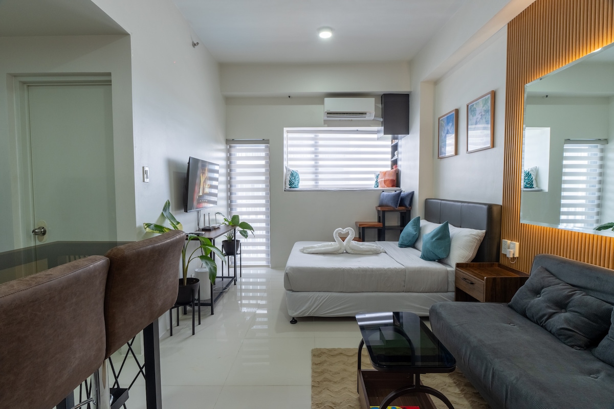 Penginapan Studio Modis di Iloilo | Balkon • Kolam Renang • Wi-Fi