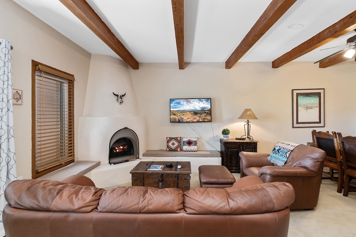 Kondominium yang baru direnovasi dan ditata dengan baik dengan pemandangan pegunungan yang menakjubkan dari beranda tertutup kami di lingkungan Casa Solana, tepat di utara pusat kota bersejarah. Hanya 5 menit berkendara ke Santa Fe Plaza, Railyard Arts District, pusat kota, dan Georgia O'Keeffe Museum. Ini adalah permata sejati dan memiliki perapian kiva yang nyaman dengan tempat duduk banco adobe, balok terbuka, sentuhan Pueblo dan Kolonial Spanyol kelas atas yang berkelas. Kami berkomitmen menjadikan masa menginap Anda menyenangkan dan berkesan!