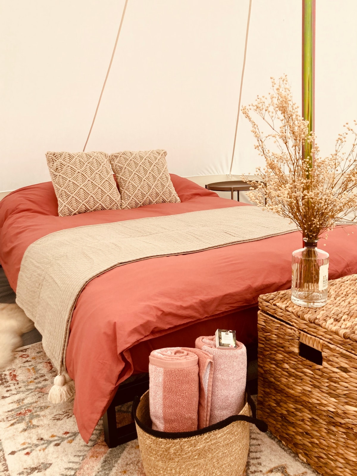 Tenda lonceng 5 meter yang luas dengan pemandangan laut yang menakjubkan, menghadap ke Pulau Caldey yang indah dan garis pantainya yang indah. Di dalamnya, Anda akan menemukan tempat tidur double nyaman yang menampilkan kasur busa memori ekstra dalam dan perlengkapan tempat tidur berbulu mewah. Kami menyediakan handuk mandi empuk dan seprai katun lembut untuk kenyamanan Anda. Di luar, nikmati area duduk pribadi Anda dan perapian/barbekyu Kadia untuk pengalaman luar ruangan yang sempurna.