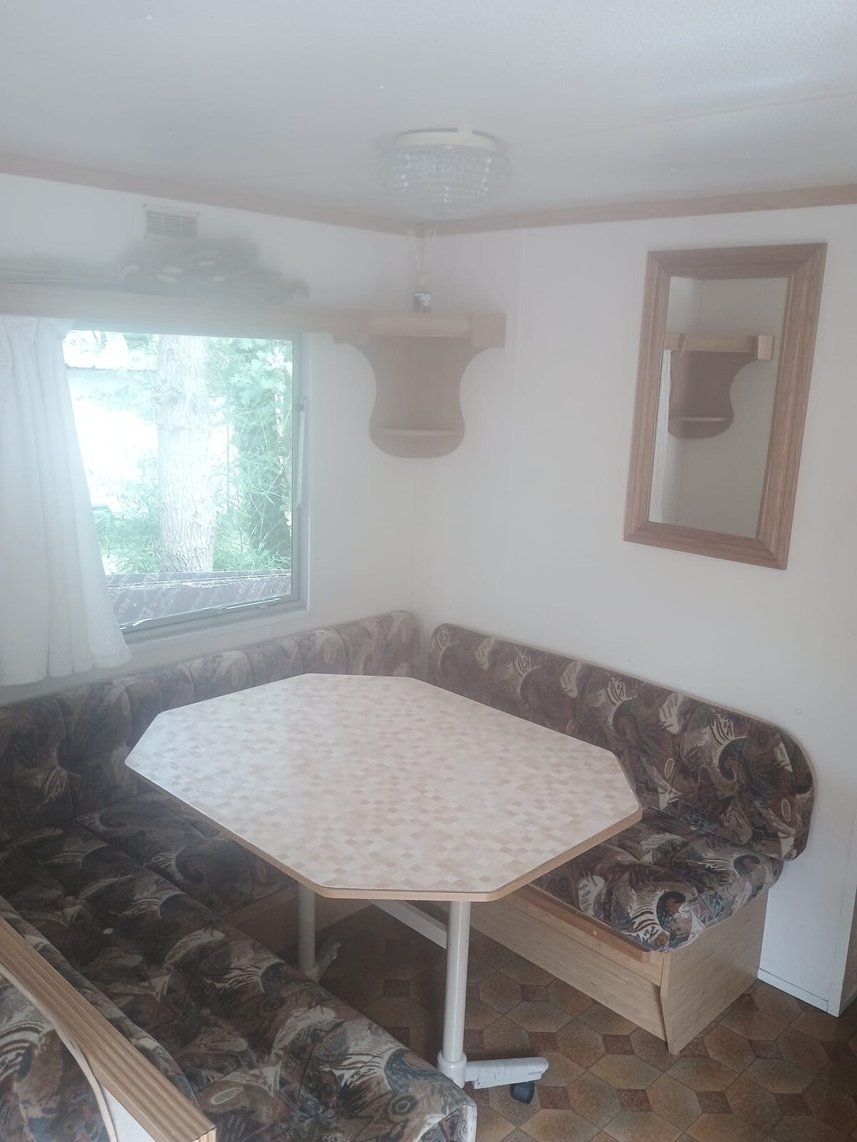 MobilHome 4 hingga 6 orang di perkemahan bintang 3 dengan area akuatik, lapangan olahraga, camilan, restoran, dll... Rumah mobile memiliki dua kamar tidur dan sofa bed di ruang tamu (tambahan). Satu kamar tidur dengan tempat tidur double, yang kedua memiliki dua tempat tidur single. Ruang tamu menghadap teras kayu tertutup yang luas, dilengkapi dengan furnitur taman dengan meja dan kursi + berjemur. Kamar mandi di dalam akomodasi dengan shower + wastafel dan toilet terpisah.