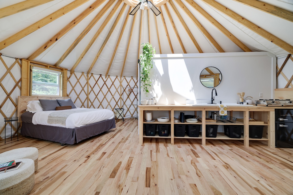 Selamat datang di yurt mewah kami yang terletak dekat dengan Danau Wallenpaupack, jalur alam, hiking, berenang, dan berperahu. Yurt ini berada di tepi lapangan pribadi properti seluas 40 hektar yang memberikan banyak privasi. Kami menggunakan seprai katun organik 100% yang memungkinkan Anda menikmati tidur malam yang nyenyak. Manjakan diri Anda dengan semua produk mandi organik alami kami sambil meninggalkan cetakan kaki ekologi minimal. Datanglah bersantai, duduklah di sekitar api unggun, dan tataplah bintang - bintang!