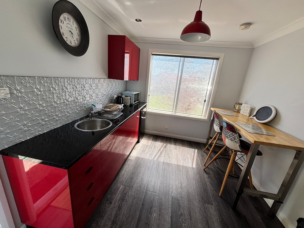 Selamat datang di tempat peristirahatan pribadi Anda di Blue Mountains di pusat kota Glenbrook. Studio mandiri kami memadukan pesona nostalgia dengan kenyamanan modern — sempurna untuk pasangan atau wisatawan solo yang menginginkan kedamaian dan kedekatan. Di lantai atas, bersantai di lounge nyaman dengan tempat tidur queen-size nyaman yang dilengkapi linen segar, sudut baca yang nyaman, dan area TV kecil untuk malam yang tenang. Di lantai bawah, Anda akan menemukan dapur kecil yang lengkap dan kamar mandi pribadi yang bersih dengan semua perlengkapan dasar. Jalan kaki singkat ke kafe Glenbrook.