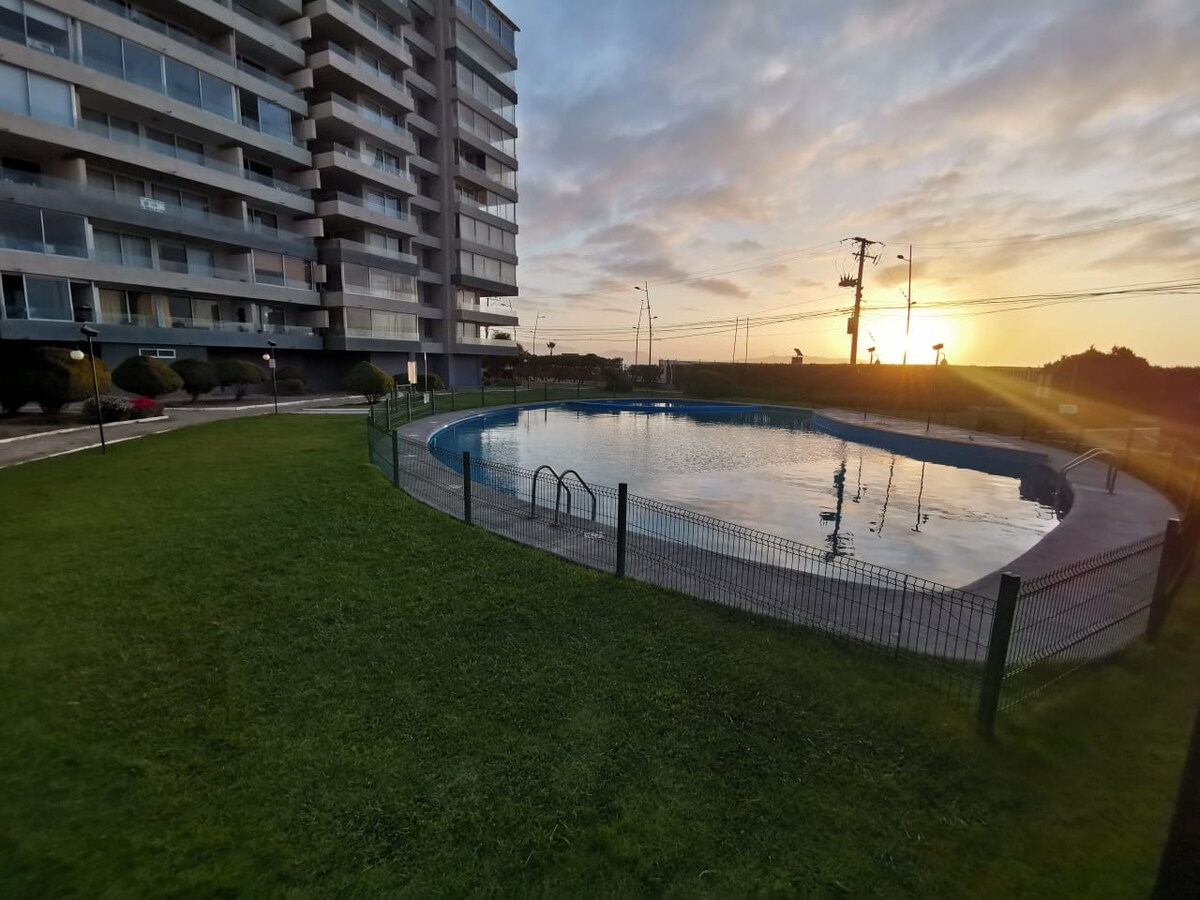 Datanglah dan nikmati tempat yang dirancang untuk bersantai dan berbagi bersama keluarga ini. Apartemen kami yang menawan terletak beberapa langkah dari pantai, memiliki teras besar untuk mengagumi pemandangan matahari terbenam yang indah di tepi laut La Serena, dan pada malam hari lampu-lampu indah yang menerangi teluk Coquimbo. Kondominium ini memiliki kolam renang, pemanggang barbeku, pusat kebugaran, dan tempat parkir, dekat Mercusuar, restoran, dan pemandangan panorama. Ini bisa menjadi tempat Anda berikutnya untuk bersantai dan menikmati.