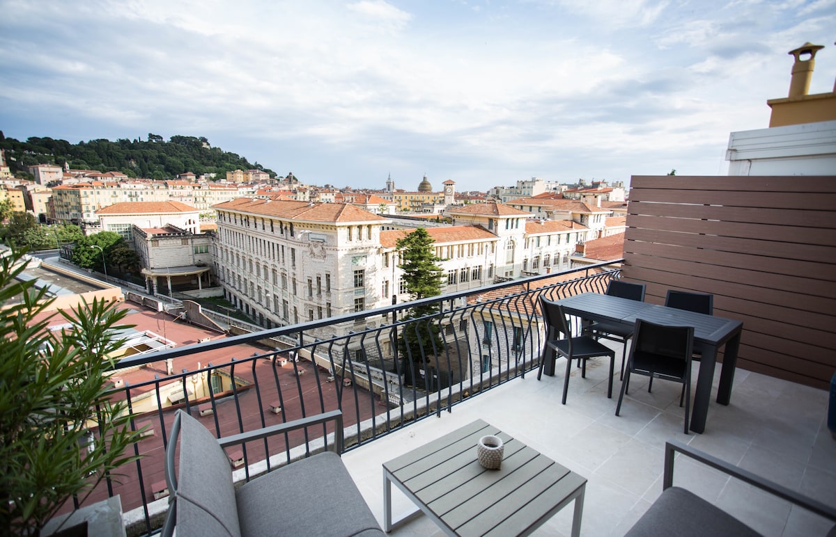 Jadikan masa inap Anda di Nice berkesan dan tidak merepotkan. Apartemen mewah yang baru direnovasi di Nice's Center ini dapat ditempuh dengan berjalan kaki dari pusat kota, Old Nice, dan Palais des Congrès. Cicipi koktail malam Anda sambil mendengarkan lonceng gereja sambil menikmati teras lantai lima yang luas yang menghadap pemandangan atap Nice dengan pegunungan di kejauhan. Baca di bawah ini untuk detail yang lebih menawan.
