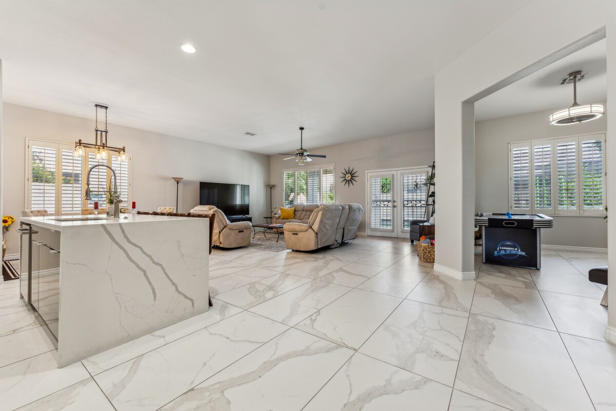 Anda akan sangat menyukai liburan AZ Anda berikutnya di rumah yang bersih dan baru direnovasi dan ramah keluarga di Peoria ini! Terletak di lingkungan yang tenang, Anda hanya beberapa menit dari restoran, pusat perbelanjaan, splash pad & pelatihan musim semi. Dan dengan kolam renang santai, ruang anak, dan ruang permainan, ada sesuatu untuk dinikmati semua orang. 8-10 menit berkendara ke: • Stadion State Farm •Desert Diamond Arena • Golf Populer •Tanger Outlet Phoenix 8 -12 menit berkendara ke: • Kompleks Olahraga Peoria •2 bantalan splash gratis (Pioneer & Rio Vista Parks)