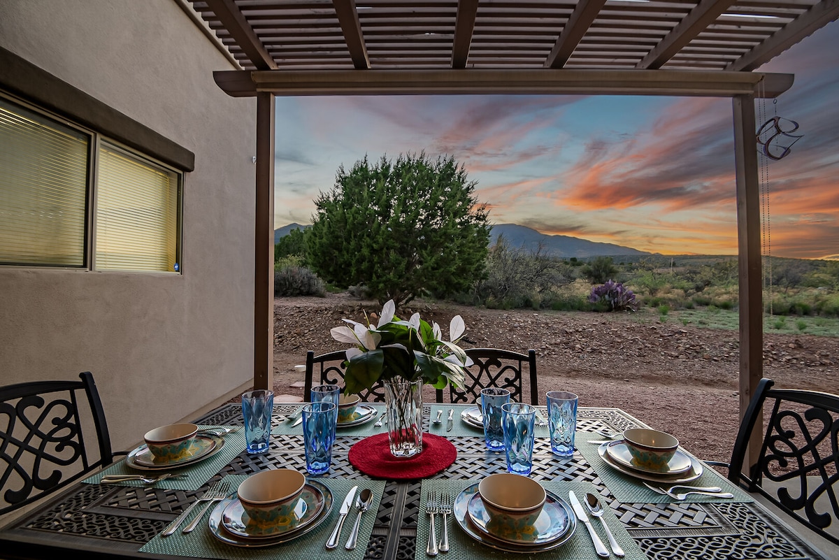 Tempat peristirahatan tenang seluas 10 hektar dengan pemandangan indah—hanya 20 menit ke tempat hiking terbaik di Sedona. Dek Anda menghadap ratusan hektar Verde Valley yang belum tersentuh — hanya Anda, gurun, langit, dan bintang yang tak terhitung jumlahnya. Dua kamar tidur yang nyaman dengan dapur, ruang tamu, dan ruang makan. Tata letaknya sangat cocok untuk dua pasangan yang bepergian bersama yang menginginkan tempat yang luas dan damai untuk bersantai. Properti kami juga memiliki suite terpisah yang terhubung (tidak ada ruang bersama) dan peternakan kecil yang tenang di tempat lain di properti.