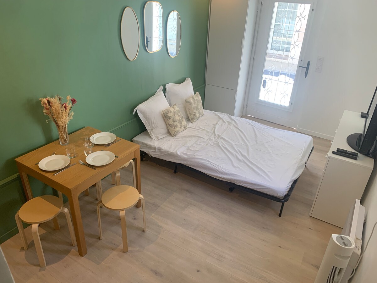 Selamat datang di T2 yang cerah dan menawan ini di lantai 1 cottage yang direnovasi, tepat di pusat desa Pérols. 5 menit dari trem dan sekitar 10 menit dengan mobil dari pantai🏖️. Toko-toko hanya sepelemparan batu, tenang dan berlokasi di antara Montpellier dan laut. Sangat cocok untuk masa inap yang menenangkan atau profesional. Seprai hotel🛏️, perlengkapan keramahtamahan, 🎁 dan kebersihan disertakan 🧹