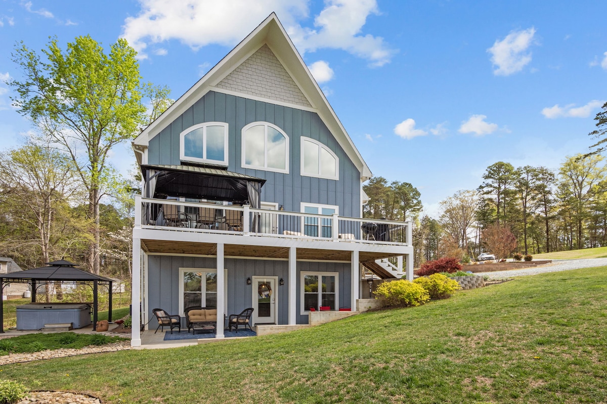 Nikmati semua yang ditawarkan kehidupan danau di oasis kami, Hyco Pointe! Dibangun pada tahun 2004 dengan 3 kamar tidur (master di lantai utama, dua di lantai dua), rumah kami berlokasi di titik yang memiliki pemandangan spektakuler dengan nuansa terpencil. Dua ruang tamu dengan pintu perancis yang mengarah ke tempat duduk luar ruangan, termasuk teras layar di lantai atas, perapian besar, dan panggangan di lantai bawah. Jalur pejalan kaki yang agak miring ke dermaga yang luas dengan akses ke kayak dan papan dayung. Dua TV pintar dan WiFi.