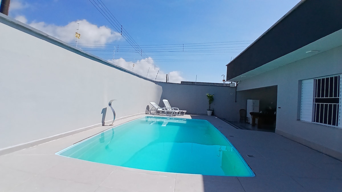 Rumah dengan kolam renang dan area gourmet di Peruíbe - SP.