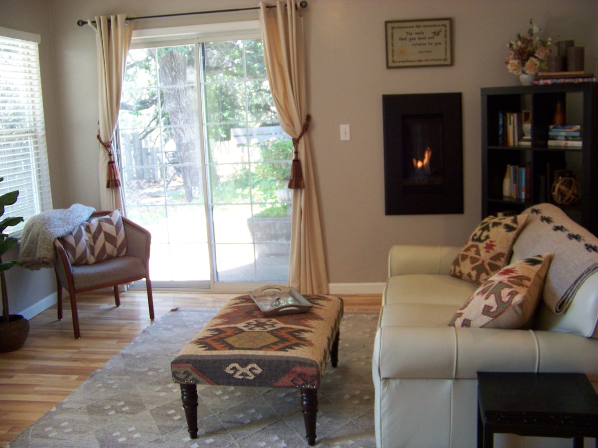 San Francisco Bay area wine country with discreet private entrance. Ketenangan dan kenyamanan dapat ditemukan di antara pohon ek warisan agung dan rumah - rumah bergaya Victoria yang bersejarah. Hanya 10 -15 menit berjalan kaki ke pusat kota Old Petaluma yang semarak. Terletak ideal, Petaluma terletak hanya 45 mil di utara San Francisco 35 menit dari pantai. Cottage mencakup "gourmet" yang baru direnovasi dapur, halaman belakang pribadi, tempat perapian gas yang nyaman, W/D khusus untuk tamu Airbnb. Tempat tidur kedua: kursi empuk, twin.