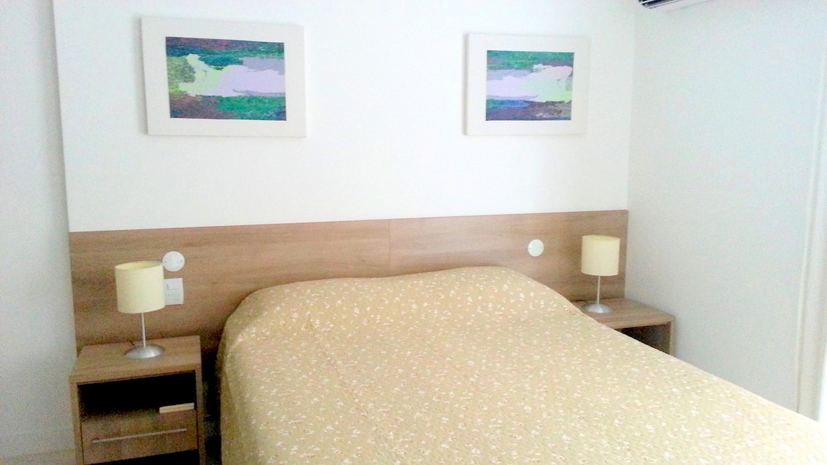 Lokasinya tidak bisa lebih baik: berada di pusat Itaipava, Taman Pameran berjarak 800 meter dari jalan kaki. Flat ini berada di lantai 7, jendela anti - kebisingan, tirai memotong lampu! Tempat ini dirancang untuk 2 orang dewasa dan 1 anak (maksimum)untuk kenyamanan! Seprai tempat tidur dan kamar mandi tersedia. Semua untuk istirahat Anda dengan kehangatan dan penyempurnaan di Serra.