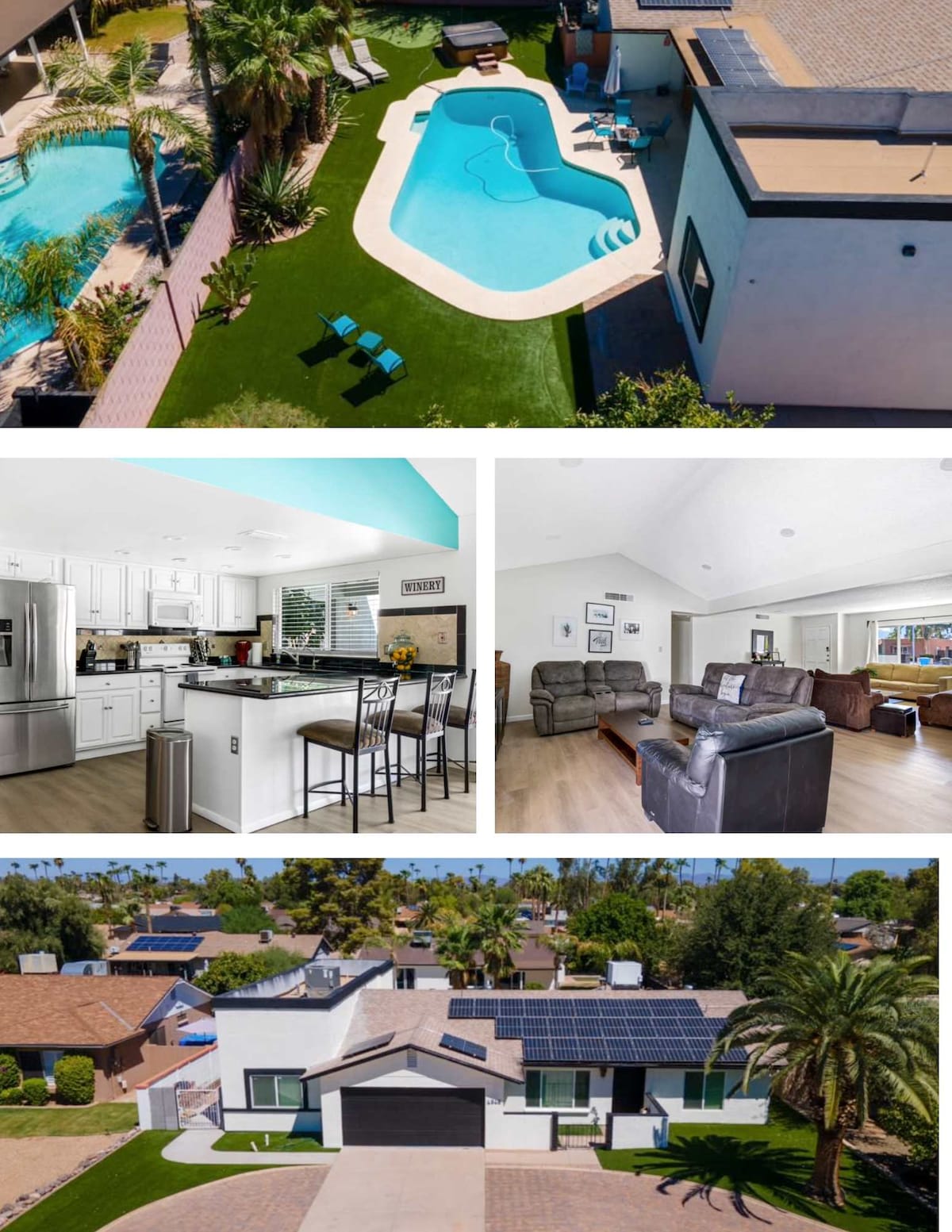 Nestled in a lush former citrus grove between Arcadia & The Biltmore, this 3500 sf retreat offers the ideal mix of resort lux and the coziness of home. Totally remodeled & professionally decorated, this 4 BR, 3.5 bath home features a resort-style, saltwater pool w/slide, open-plan living room/kitchen, spa-like master suite with king bed, jetted tub and 2-person shower; a second king master suite, a 3rd king bedroom w/ adjoining full bath shared with a 4th bedroom with 2 queen beds.