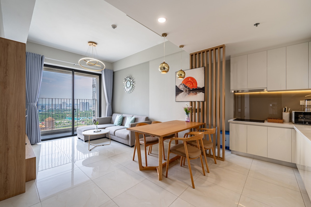 Apartemen Masteri Thao Dien berjarak 3 menit berjalan kaki dari stasiun Metro An Phu, mudah bagi Anda untuk pindah ke pusat kota dengan kereta api. Apartemen ini berlokasi di area ekspatriat yang berfokus pada tempat tinggal di Thao Dien. Apartemen ini hanya beberapa langkah dari Vincom Megamall, memiliki banyak toko, restoran, hiburan, bioskop. Apartemen ini memiliki balkon pribadi, kolam renang, dan pusat kebugaran. Pelanggan memiliki akses ke WiFi berkecepatan tinggi 300Mbps gratis di apartemen. Apartemen ini memiliki dapur lengkap dengan kompor elektromagnetik, microwave, peralatan memasak dasar.