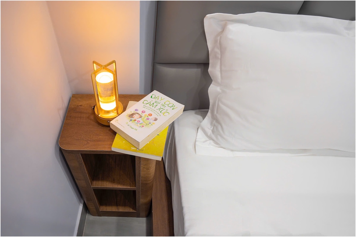 Selamat datang di Oasis Perkotaan Anda! Bersantai di apartemen 1 kamar tidur kami untuk 2 orang dengan balkon pemandangan lebar di Japan Town, hanya 5 menit dari pusat HCM. Restoran, bar, kafe, tempat pijat, dan minimarket semuanya berjarak 1 -100 m berjalan kaki. Di lantai 3, surga Japandi Anda memiliki fasilitas lengkap. Tidak ada lift, tetapi tangga yang lebar dan lembut adalah latihan gratis! 💪 Nikmati proyektor 100 inci untuk malam film, sofa 1,8 m yang nyaman, dapur lengkap, dan kamar mandi yang menyegarkan.