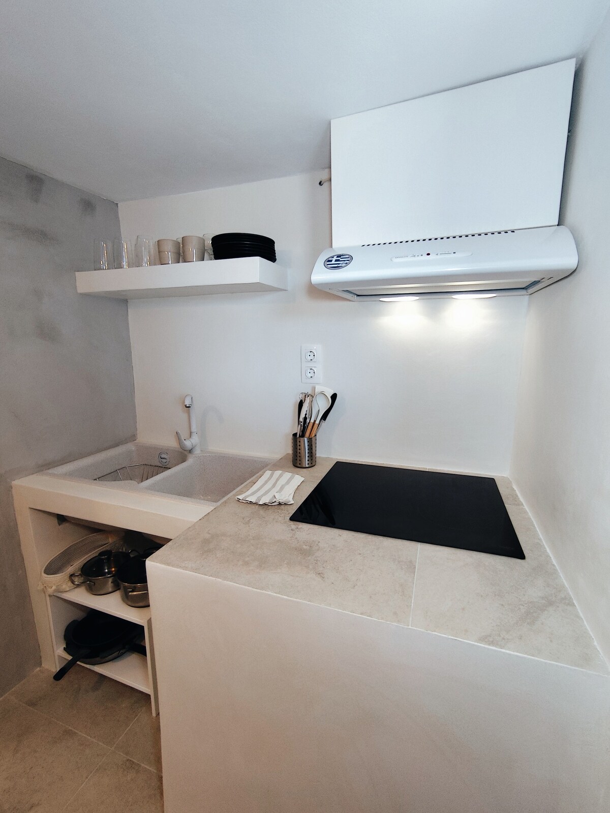 Think of a paradise. With the stunning sea view, Cycladic design and distinctive contemporary finishing touches. This is the place! Our accommodation is located in Mandrakia Village. The sea is just 50m away. It consists of one bedroom with one queen bed, fully equipped kitchen and a bathroom (with complimentary toiletries), smart TV, air conditioning and Wi-Fi. You can enjoy food & drinks on its terrace with spectacular view of the deep blue Aegean. The port of Adamas is 5 min away with a car.
