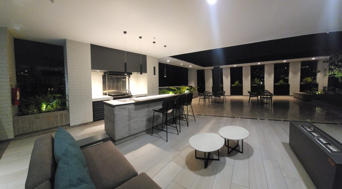 Studio baru yang modern di lantai 14 dengan pemandangan langsung La Carolina Park. Fasilitas studio: • Wi - Fi fiber optic berkecepatan tinggi • Smart TV QLED 55” • Tempat tidur yang sangat nyaman - Dapur dilengkapi penuh • Kamar mandi modern • Smart lock • Keamanan 24/7 Area sosial (lantai 17): • Pusat Kebugaran • Area kerja bersama dengan WiFi • Ruang permainan - Area BBQ • Jacuzzi (hanya tersedia untuk masa inap lebih dari dua malam) Lokasi utama, hanya 15 menit dari Quito Metro, pusat perbelanjaan, dan restoran.