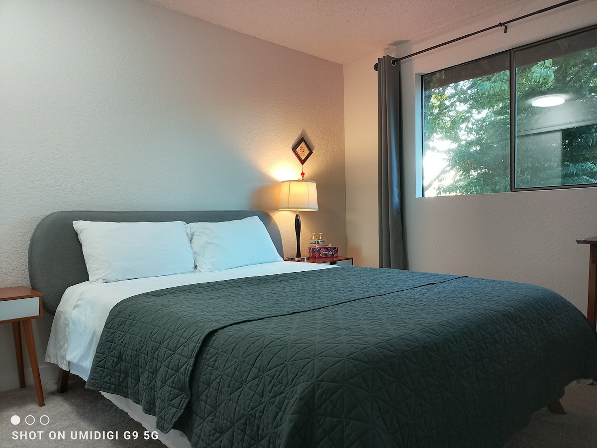 Relax in your private Lynnwood suite! Entire lower floor with private entry, comfy beds, Wi-Fi, workspace, kitchenette (fridge, microwave, coffee maker), and private patio. EV charging (Tesla) available for $15/day(charge). Just 5 min to Alderwood Mall, Costco, Whole Foods, and dining. Easy access to I-5 & Hwy 99 for quick Seattle trips. Close to Swedish Edmonds & Providence hospitals — ideal for travel nurses. Clean, cozy, and convenient!