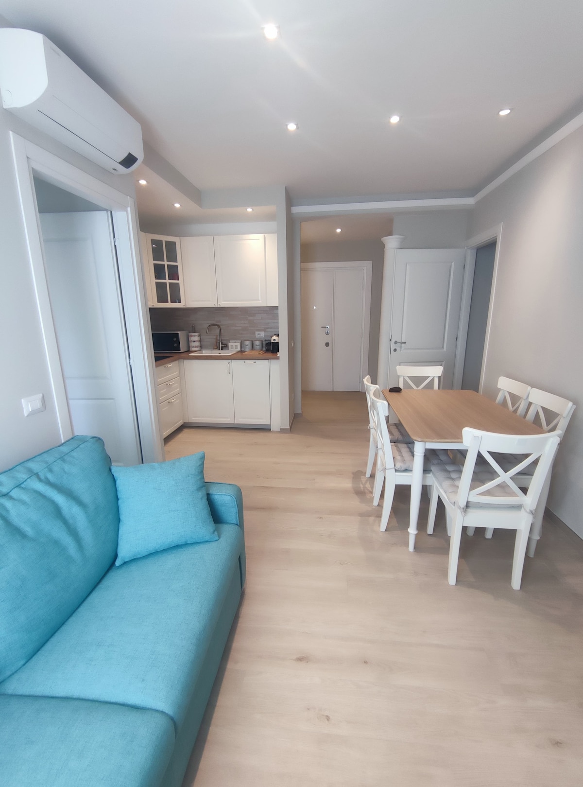 Apartemen baru, baru direnovasi (November 2023). Berada di lantai dua tanpa lift. Terdiri dari: - ruang tamu yang cerah dengan dapur kecil dan tempat tidur sofa ganda; - kamar tidur dengan tempat tidur double dan kamar mandi dalam; - kamar tidur dengan double bed; - kamar mandi dengan pancuran dan wastafel - kamar mandi dengan pancuran dan toilet. Wi-Fi gratis di semua kamar dan AC.