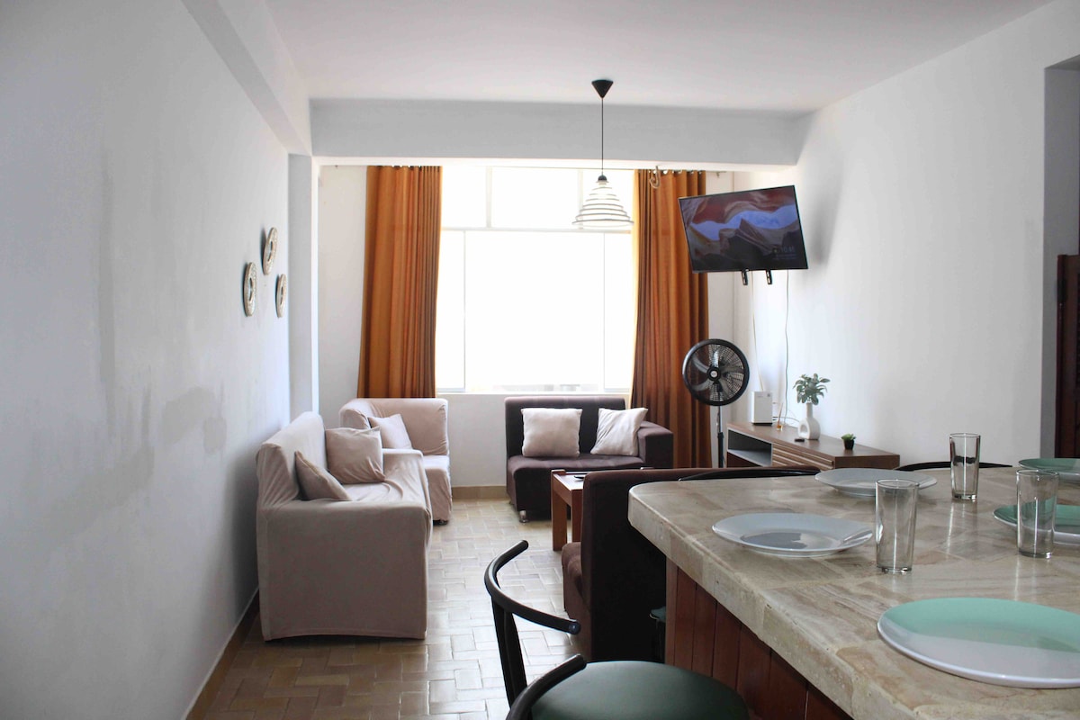 * Setelah 2 Malam HARGA TERBAIK * 👍 Harga khusus Senin hingga Kamis * Diskon untuk pemesanan 7 malam. * Diskon pemesanan 1 bulan. PARKIR GRATIS DI LUAR GEDUNG✌️. Apartemen berperabot lengkap (lantai 2 menghadap ke jalan) yang terletak di Segundo Malecón de Pimentel (Area perumahan dan aman). Tempat unik ini memiliki gayanya sendiri👍 Ideal untuk bersantai dan menikmati perjalanan bisnis, sebagai pasangan atau dengan bayi kecil (kurang dari 2 tahun tidak membayar🙌).