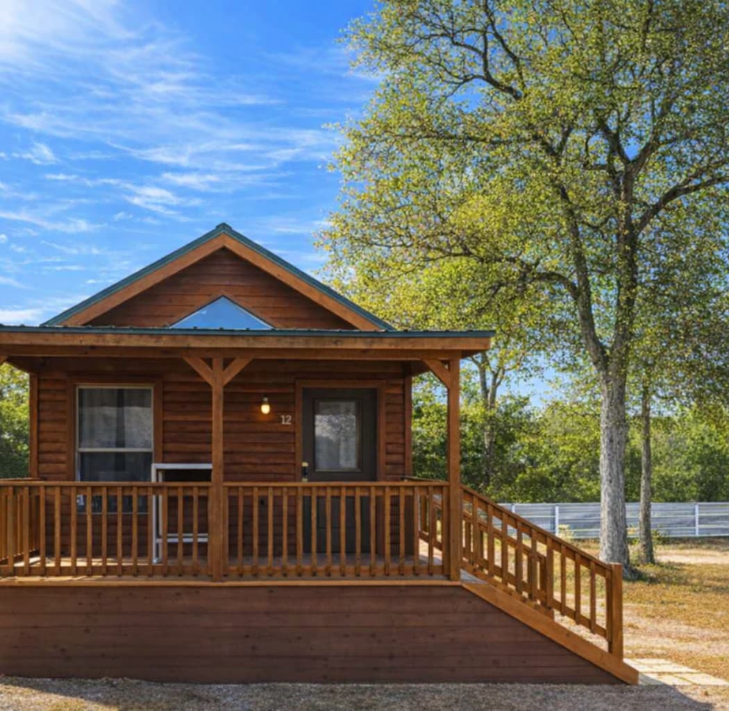 Kabin FoxHollow menawarkan tempat peristirahatan yang damai di bawah Texas Oaks di perkebunan keluarga kami yang disebut Deerhaven. Liburan unik seperti perkemahan di alam! Tempat tidur king yang luas, wifi, AC, pemanas, RokuTV, microwave, kulkas mini, Keurig, dek, dan area BBQ/piknik pribadi. Rusa menyambut Anda di sepanjang jalan menuju kamar mandi lengkap yang Anda pesan sendiri - salah satu dari 3 kamar mandi pribadi yang terletak di fasilitas terpisah kami dengan berjalan kaki sebentar dari kabin Anda. Nikmati udara segar, satwa liar, dan nuansa Hill Country yang hanya berjarak 8 menit ke toko/tempat makan.