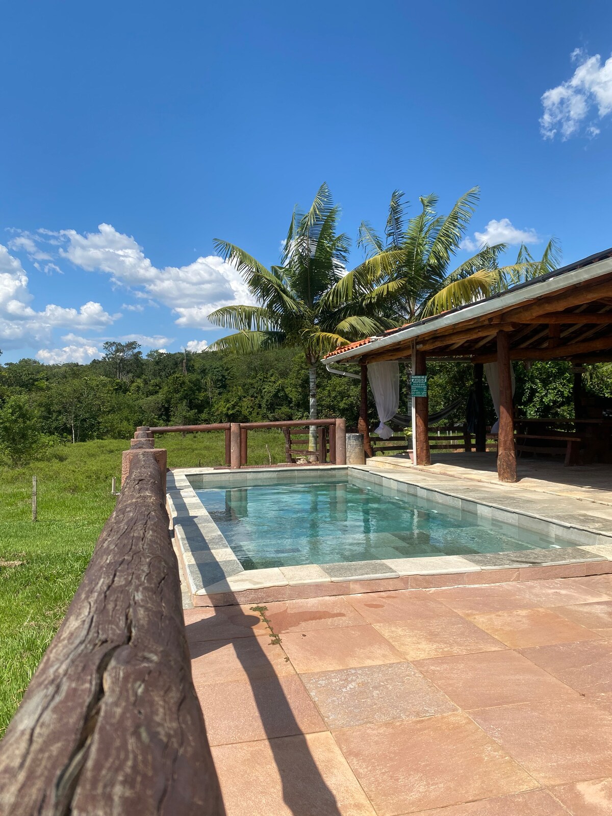 Chalé acolhedor e privativo localizado na Serra dos Pireneus próximo ao Parque Estadual e atrações turísticas. Ideal para quem busca tranquilidade e contato com a natureza. O espaço conta com um chalé funcional, acesso a jardins, lagos ornamentais, campo gramado e piscinas particulares de água natural. O ambiente é tranquilo e seguro cercado de cerrado nativo onde abriga uma Reserva Particular do Patrimônio Natural (RPPN). Possui vista panorâmica, ótima para desfrutar o pôr-do-sol.