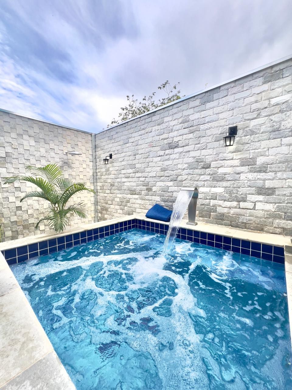 Relaxe neste espaço calmo e estiloso, ambiente lindo e romântico ideal para casais, quarto com telão (tutorial de como ligar com anfitrião),lareira elétrica e arcondi, sofá cama amplo e áreazinha externa com piscininha privativa aquecida por aquecimento solar(dias com sol = água quente).iluminada, com hidro e bela cascata, ducha fria refrescante, louças para preparar um lindo jantar e café da manhã. Um cantinho cheio de detalhes e carinho pra você. Auto-Check In acesso por senha/código.
