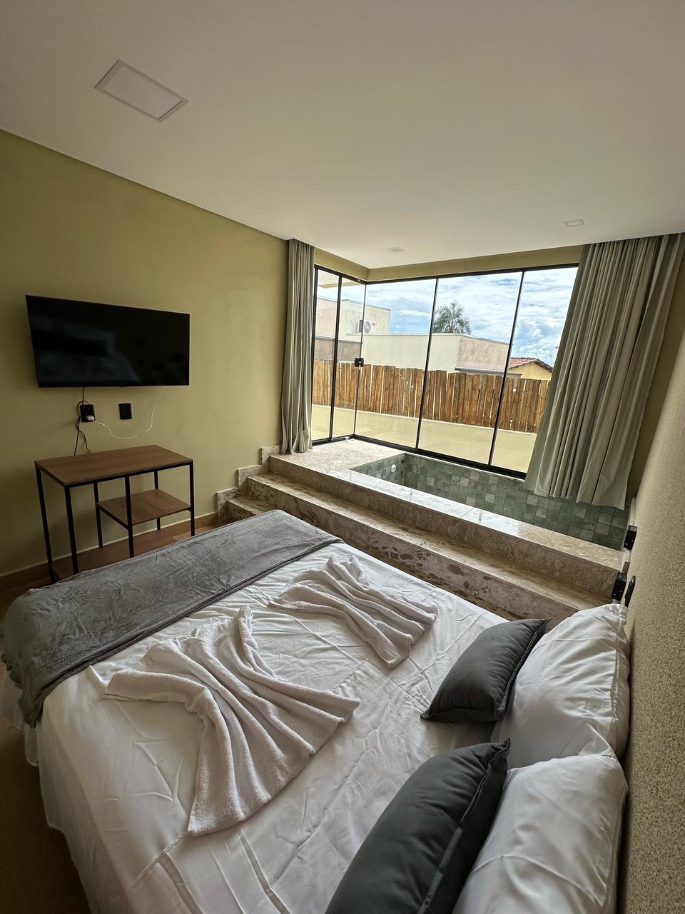 Loteng Vila da Serra adalah peluncuran terbaru di pirenópolis. Dengan lokasi yang bagus, dekat dengan jalan santai dan speakeasy Chaguinha. Novissímo, loteng ini dapat menampung 4 orang, dengan suite ganda dan ruang tamu dengan sofa bed untuk 2 orang dan kamar mandi lengkap. Tempat ini memiliki Jacuzzi pribadi yang menawan dengan kapasitas 7 orang dengan akses ke kamar mandi. Area bersama luar ruangan dengan kolam renang dan air terjun