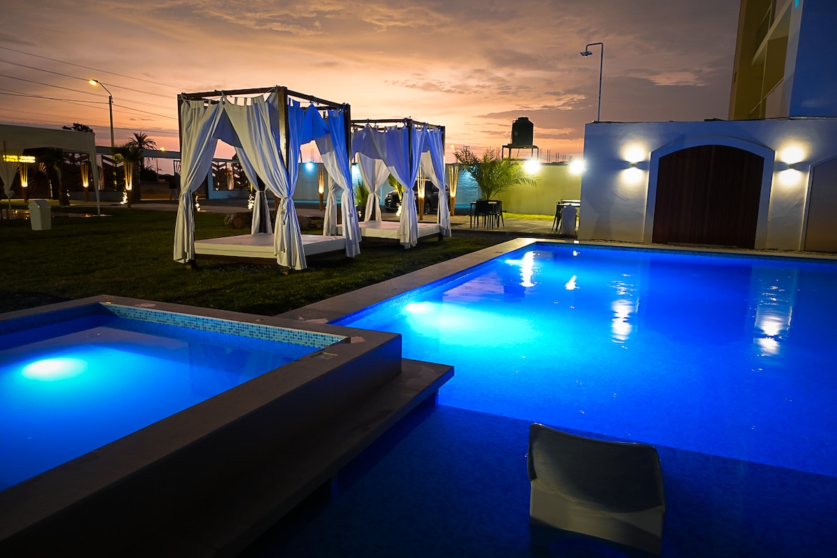 Vive una experiencia diferente y romántica en Paracas, combinando la aventura del glamping con la comodidad de un hotel. A 5 minutos de la playa El Chaco y a 10 minutos del boulevard y tours a Islas Ballestas. El precio incluye desayuno americano, acceso a piscina y estacionamiento. Ideal para parejas que buscan comodidad, privacidad y excelente ubicación.