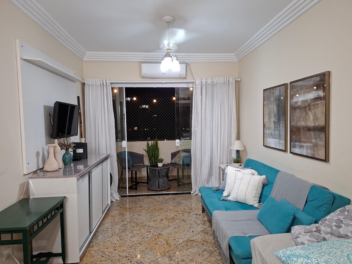 🌴 Apartemen hadap pantai di Guarujá! 📍 Lokasi strategis, 🛏️ 2 kamar tidur: -1 dengan tempat tidur double, dan satu dengan tempat tidur bertingkat. 💨 Kipas angin di ruang tamu dan kamar tidur. WiFi. 🍽️ Dapur yang dilengkapi peralatan makan Sudah termasuk layanan🏖️ pantai Restoran 🍽️ eksklusif di gedung ini (musim ramai). 🚶♂️ Tidak perlu menyeberang jalan, bangunan ini berada di atas pasir! 🛍️ Di dekat lokasi Anda ada: • Pasar, toko roti, restoran, apotek, pusat perbelanjaan Guarujá berjarak 400 m, ada bioskop 📌 Mampu menampung hingga 4 orang.